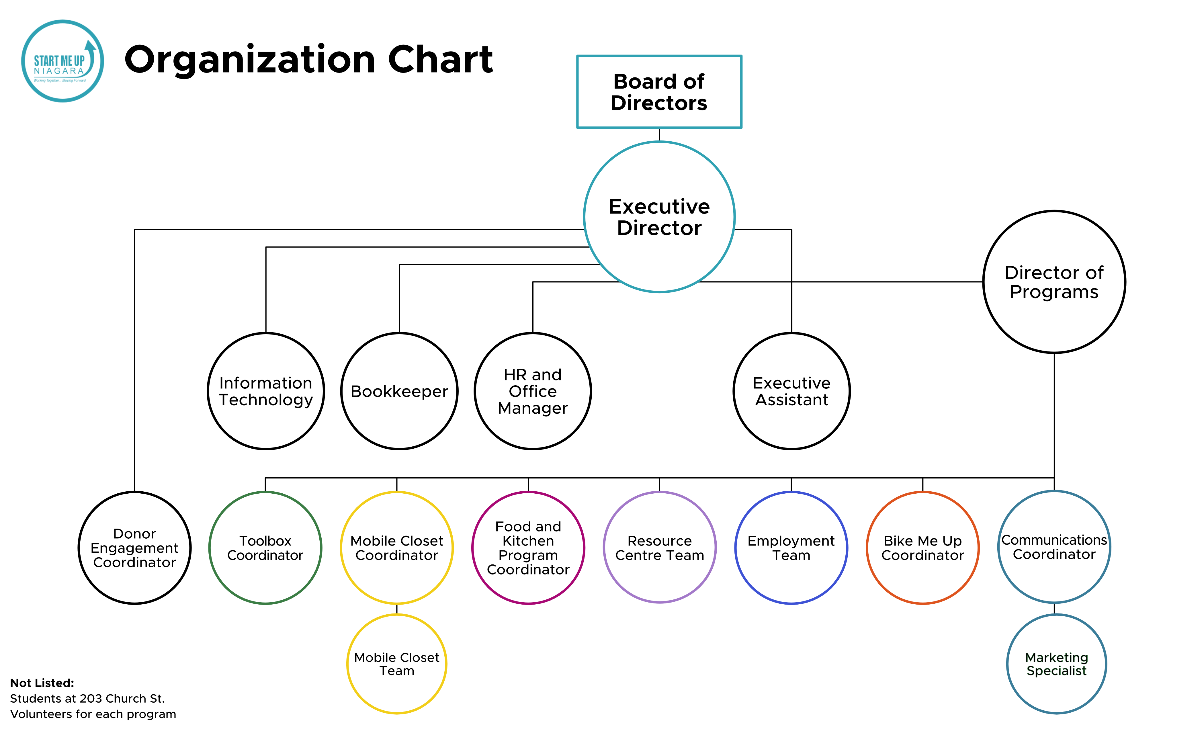 Learn how Start Me Up Niagara’s programs and teams are structured in our current organizational chart below.