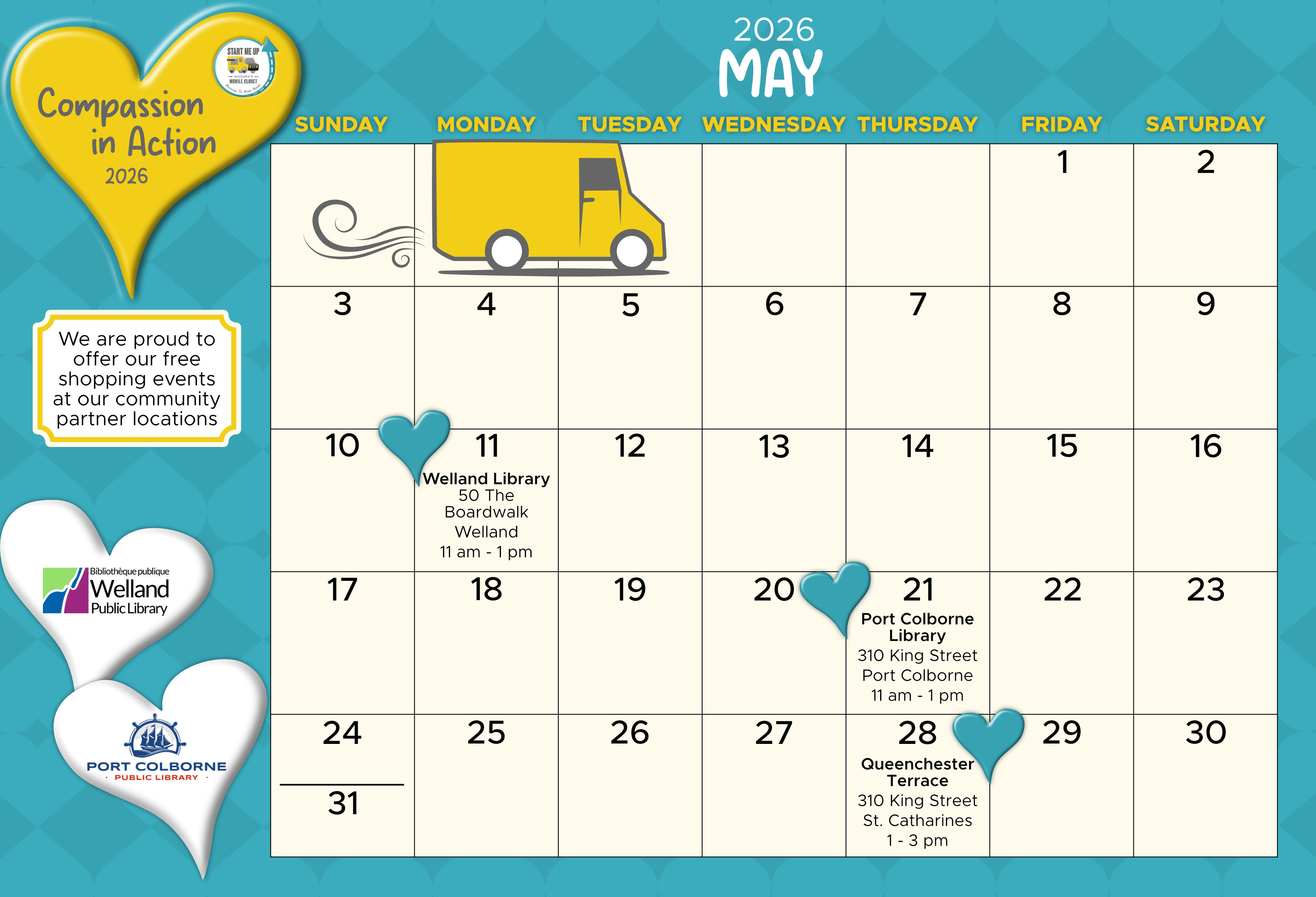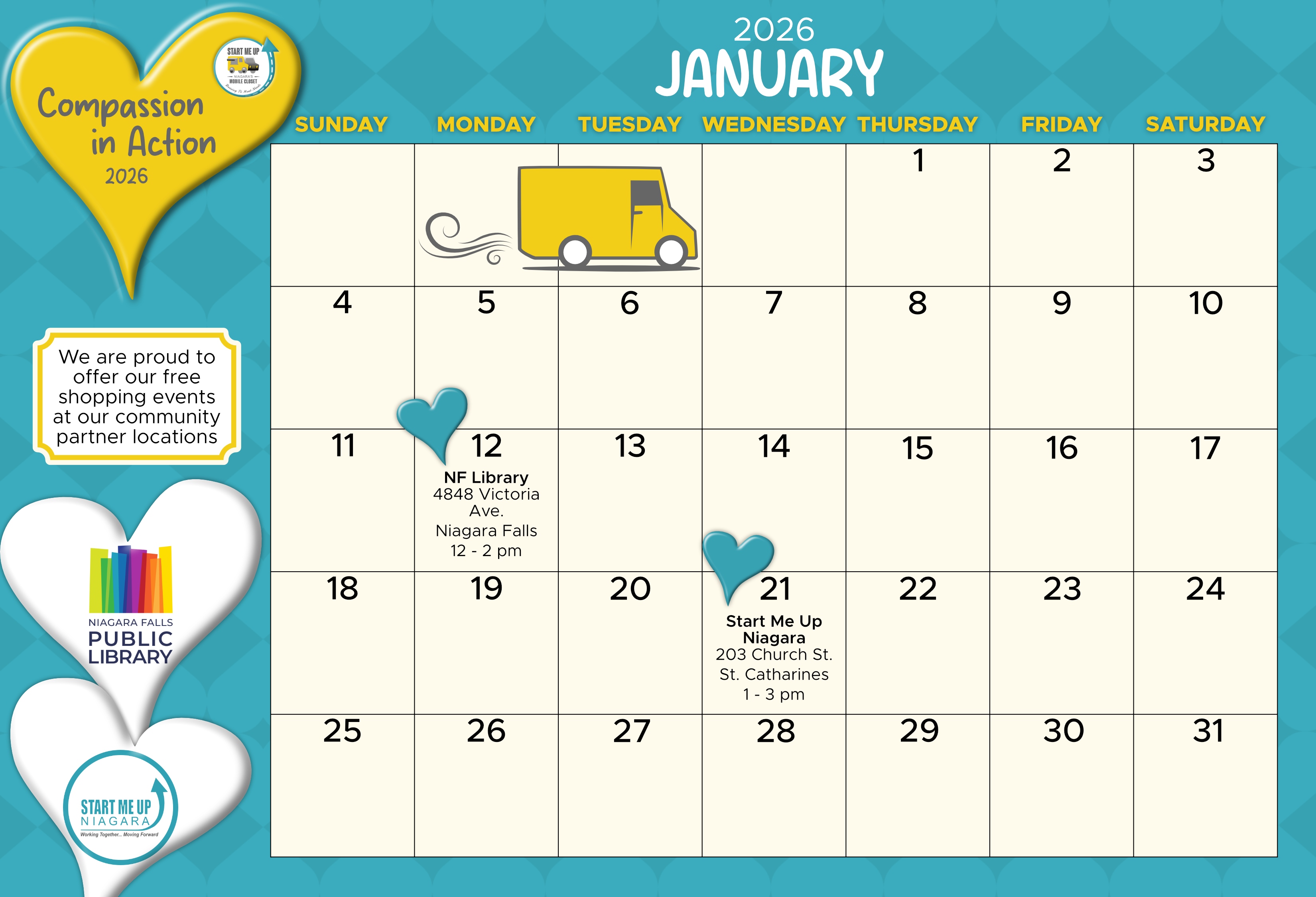 We are a mobile service that provides free, seasonally appropriate new/gently used clothing and other daily necessities to the unsheltered and low-income population in the Niagara Region. We kindly take your donations at the times below.