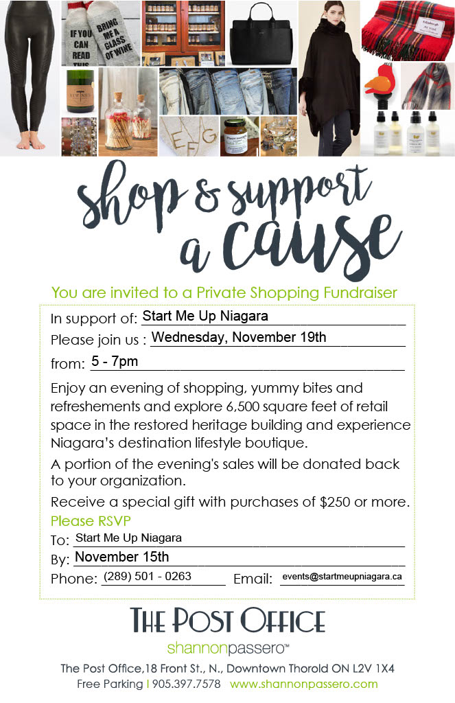 All proceeds support our Legacy Campaign, helping to fund the Resource Centre and essential programs at Start Me Up Niagara.